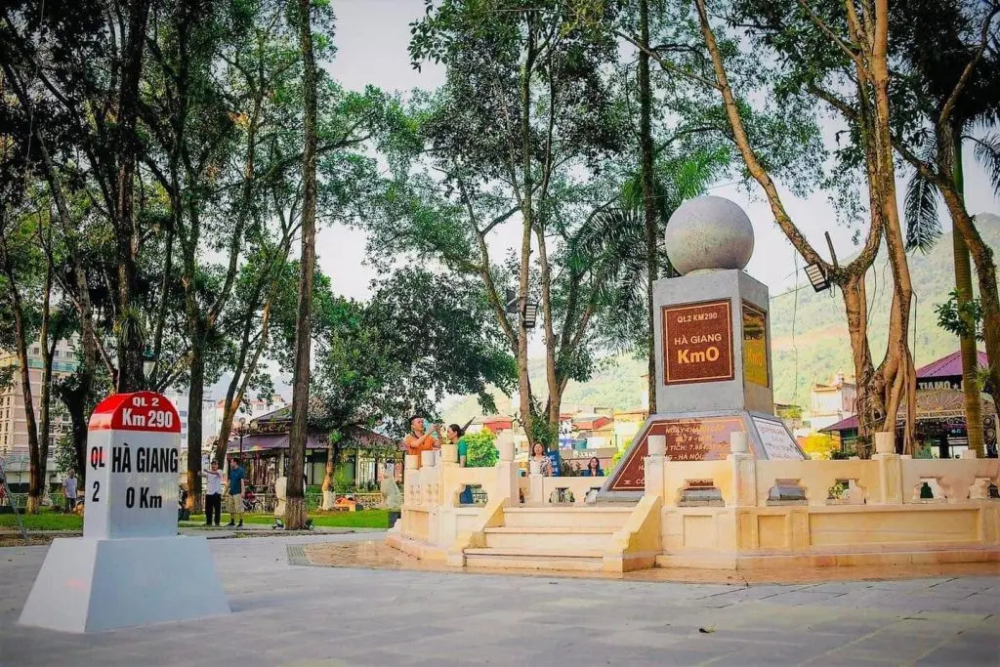 14h00: Hướng dẫn viên đón Quý khách lên xe (ghế thường) nhập đoàn và đi chụp hình kỷ niệm tại Km0 của Hà Giang. Điểm giao nhau của QL2, QL34 và QL4C hay còn gọi là Con đường hạnh phúc.