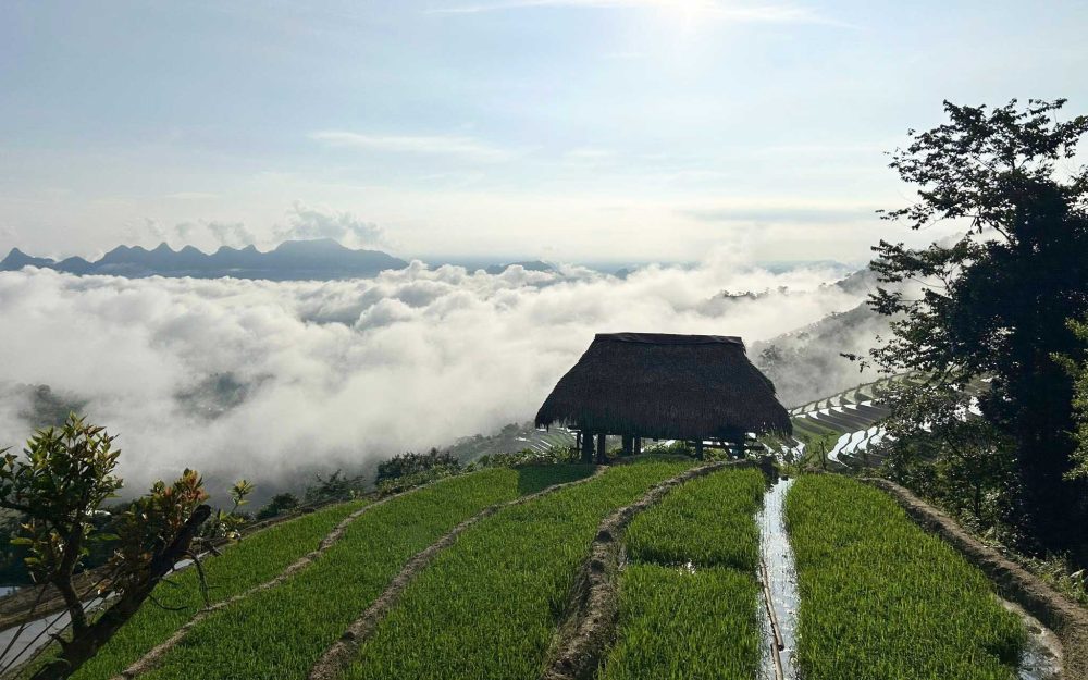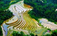 Trưa: Ăn trưa tại Khuổi My. Ngồi trong ngôi nhà sàn của người Dao vừa thưởng thức bữa ăn truyền thống, vừa ngắm cảnh ruộng bậc thang và thưởng thức loại trà Shan Tuyết đặc sản địa phương.