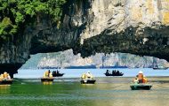 14h00: Đến đảo Bồ Hòn. Quý khách thăm quan Hang Sửng Sốt – Một trong những hang động đẹp nhất vịnh Hạ Long. Tiếp theo, Quý khách sẽ chèo Kayak hoặc đi thuyền nan thăm Hang Luồn (chi phí chèo kayak hoặc ngồi thuyền nan chưa bao gồm). Sau 30 phút chèo Kayak, Quý khách lên tàu để đến với đảo Titop. Quý khách có thể tắm biển tại bãi tắm Titop với bãi cát trắng, hoặc thử trekking leo lên đỉnh núi Titop ngắm nhìn toàn cảnh Vịnh Hạ Long.